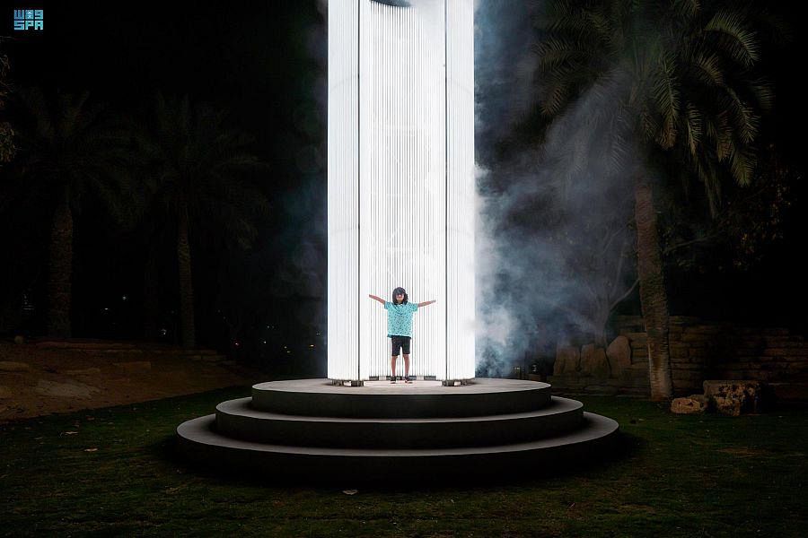 Carolina Halatk’s artwork “Beacon” consists of 272,160 LED lights, which lit up the city of Riyadh, and won the admiration of visitors to the King Abdulaziz Historical Center. Meanwhile, Koert Vermeulen’s “Star in Motion“ set a world record as the brightest hanging decoration in the world, as it was made using 1.2 million lamps suspended at a height of 256 meters in the Kingdom Tower, which was seen by residents and visitors of Riyadh during the celebration period.