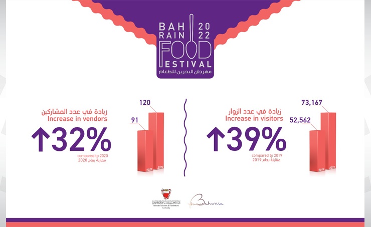Manama, Mar.26 (BNA): The Bahrain Tourism and Exhibitions Authority reported that the Bahrain Food Festival, which is currently taking place in the Bahrain Harbour, welcomed 73,167 visitors in the first seven days of its launching, from Saturday 19 to Friday 25 March, representing a 39% increase over the same festival in 2019.