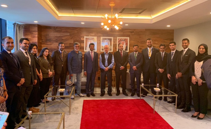 New York, Sept. 17(BNA): Cabinet Minister Mohammed bin Ibrahim Al-Mutawa met Bahrain Permanent Representative to the United Nations and Mission members in New York Jamal Al-Ruwae. The meeting was attended by Shaikh Hosam bin Isa Al-Khalifa, president of the award of His Royal Highness Prime Minister Prince Khalifa bin Salman Al-Khalifa for Sustainable Development.