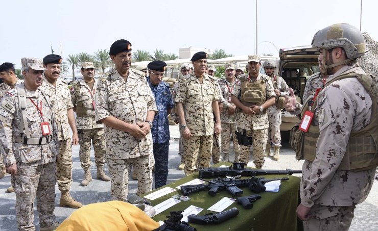 The BDF Commander-in-Chief was received on arrival by Peninsula Shield Forces Commander Major General Abdulaziz bin Ahmed Al Balawi and senior officers. He listened to a briefing on the goals and stages of the military exercise and got informed about the outstanding outcome of the drill. Then, he inspected the Operations Centre and watched part of the exercise. He was also informed about the modern equipment and weaponry, stressing that the drill reflects the advanced level of continuous preparation plans and training programmes of the Peninsula Shield Forces to enhance the command capabilities, groom officers and train on implementing defence operation schemes.