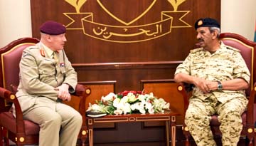 Manama, July 3 (BNA): Commander-in-Chief of Bahrain Defence Force (BDF) Field Marshal Shaikh Khalifa bin Ahmed Al Khalifa received today British Defence Senior Advisor for the Middle East Lieutenant-General John Lorimer and his accompanying delegation. He welcomed him lauding outstanding historic relations of friendship between Bahrain and the United Kingdom and growing cooperation mainly in the defence field. The meeting was attended by General Command Court Director Major General Hassan Mohammed Sa’ad, Acting Chief of Staff Major General Abdullah Hassan Al Nuaimi, Assistant Chief of Staff for Catering and Supply Rear Admiral Yusef Ahmed Malallah and Military Cooperation Director Rear Admiral Mohammed Hashim Al Sadah.