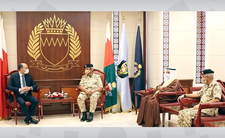 Manama, June 30 (BNA): Commander-in-Chief of the Bahrain Defence Force, Field Marshal Shaikh Khalifa bin Ahmed Al Khalifa received, at the BDF General Command today, the newly-appointed Tunisian Ambassador to Bahrain, Kamal Al-Qizani. Defence Affairs Minister, Lieutenant-General Abdulla bin Hassan Al-Nuaimi, and Chief of Staff, Lieutenant-General Dhiyab bin Saqr Al-Nuaimi, attended. The commander-in-chief welcomed the new ambassador, and wished him every success in carrying out his diplomatic duties. Field Marshal Shaikh Khalifa bin Ahmed lauded the Bahraini-Tunisian relations which are growing steadily across various fields. Director of the BDF General Command, Major-General Hassan Mohammed Saad, Assistant Chief of Staff for Supply and Catering, Rear Admiral Yousif Ahmed Malallah, and a number of senior BDF officers were present.