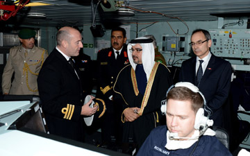 Manama, Jan4 (BNA) Deputy King, His Royal Highness Prince Salman bin Hamad Al Khalifa, today attended an event aboard Britain’s HMS Defender as part of the 200th anniversary celebrations of Bahrain-UK relations. His Royal Highness the Deputy King emphasised that the Bahrain-UK relationship is built on mutual respect and a shared pursuit of safety, stability and prosperity for both nations. His Royal Highness also noted the relevance of marking the bicentenary celebrations aboard the impressive HMS Defender as both countries look forward to the opening of Britain's HMS Juffair Naval Base later in the year. In his remarks, His Royal Highness highlighted that Bahrain and the UK hold a shared history and partnership that has continuously sought to protect the values that both countries hold dear. His Royal Highness emphasised that both countries must continue to share experiences and learn from one another as Bahrain and the UK have many areas of common interest, including security, economic, and public policy interests. His Royal Highness concluded by stressing that continued cooperation and joint working will lead to brighter futures for both countries. His Excellency the British Ambassador thanked His Royal Highness for attending the event and for the crucial role he plays in further strengthening ties between the UK and Bahrain. He underlined that Bahrain and the UK share a long and special history and that relations span a huge array of shared interests. The Ambassador also noted that the UK and Bahraini Governments, as well as companies, schools, clubs and community organisations, will host a year-long series of events that will touch on business, culture, sports, education, food and fashion.