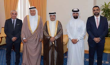 Manama, July 15 (BNA): Deputy Prime Minister Shaikh Ali bin Khalifa Al Khalifa received today Board Chairman of Al-Bilad newspaper Abdul Nabi bin Abdullah Al Shola who introduced to him sport section Head Ahmed Karim and journalist at the local news section Alawi Al Musawi on the occasion of their winning the 3rd edition of Khalifa bin Salman Press Award in the journalistic investigation and opinion column categories.