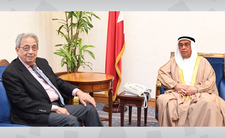 Manama, Nov. 24 (BNA): Deputy Prime Minister His Highness Shaikh Mohammed bin Mubarak Al Khalifa received Arab League (AL)’s former Secretary-General Amr Moussa, President of African Elders Council, who was in Bahrain to participate in Manama Dialogue. They reviewed regional and international issues and their repercussions on national Arab security as well as political, intellectual and security topics discussed at The Manama Dialogue, asserting the importance of security in the stability of countries and their developmental programs in various fields. Moussa praised the Kingdom’s hosting Manama Dialogue since its inception that confirms consultation to achieve international security and peace.