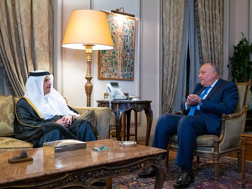 Cairo, March 28 (QNA) - HE Deputy Prime Minister and Minister of Foreign Affairs Sheikh Mohammed bin Abdulrahman Al-Thani met in Cairo Monday with HE Minister of Foreign Affairs of the Arab Republic of Egypt Sameh Shoukry.
