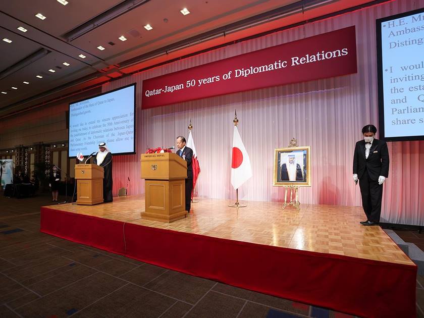 Tokyo, March 29 (QNA) - HE Deputy Prime Minister and Minister of Foreign Affairs Sheikh Mohammed bin Abdulrahman Al-Thani underlined that relations between the State of Qatar and Japan have witnessed a great leap, and moved from the stage of friendship and cooperation to a comprehensive strategic partnership, thanks to the joint cooperation in various fields. In a recorded speech at the celebration hosted by the Embassy of the State of Qatar in Tokyo today to mark the occasion of the 50th anniversary of the establishment of diplomatic relations between the two countries, HE Deputy Prime Minister and Minister of Foreign Affairs Sheikh Mohammed bin Abdulrahman Al-Thani underlined that the State of Qatar attaches great importance to its relations with Japan, especially as it is one of Qatar's most important partners in the fields of energy, trade, investment and development, and other areas of cooperation supported by legal frameworks and agreements that guarantee mutual benefit for the two friendly countries and peoples. His Excellency noted that the celebration on the 50th anniversary of the establishment of diplomatic relations between the two friendly countries provides a renewed opportunity to consolidate the comprehensive partnership by opening new channels of cooperation and exchange of experiences. "We reiterate our tireless keenness to work closely with our partners in Japan to strengthen, develop and diversify relations, and promote them to broader horizons that meet the desired aspirations of our two friendly countries," he added. HE Deputy Prime Minister and Minister of Foreign Affairs said that in light of the successive developments in the world, which cast a shadow on global security and peace as well as the stability of energy markets and the protection of global transmission lines, "the partnership between our countries constitutes a model for developing multilateral international action for facing global security challenges, and pushing for peaceful solutions to disputes, in a way that guarantees the preservation of the security and economic gains of our two countries, and the achievement of global prosperity." His Excellency expressed his deep thanks and appreciation to the Japanese government and people for decades of fruitful partnership and constructive relations that painted a bright picture of the bilateral relations between countries. He also renewed his thanks and appreciation to all those who contributed to the strengthening and development of the bilateral relations over the past 50 years, and those who worked hard for their continuation and development. Deputy Prime Minister and Minister of Foreign Affairs Sheikh Mohammed bin Abdulrahman Al-Thani invited the friendly Japanese people to visit Qatar in November to attend the FIFA World Cup Qatar 2022. "We look forward to welcoming you in your second country, hoping that this event will be an opportunity for the friendly Japanese people to learn about our Arab and Islamic culture, and to meet with their Qatari friends in an atmosphere dominated by fair sports competition," His Excellency said, expressing hope that this historic occasion will be an opportunity for the Qatari and Japanese sides to renew their resolve to start a new phase of serious work to build deeper relations, and to strengthen the existing strategic partnership between the two friendly countries. For his part, HE Minister of Foreign Affairs of Japan Yoshimasa Hayashi extended his sincere congratulations on behalf of the Government of Japan to the State of Qatar on this occasion, noting that Chubu Electric Power imported the first shipment of liquefied natural gas from the State of Qatar in 1997, and since then the State of Qatar has been an important partner and one of the most reliable gas suppliers to Japan, stressing that the relations have deepened closely, especially in the energy field. His Excellency noted that the State of Qatar supported Japan in various ways, including the $100 million contribution in the wake of the earthquake disaster that struck northeastern Japan in 2011; as well as its support for the return of Japanese citizens from abroad by continuing Qatar Airways flights at the height of the COVID-19 pandemic crisis, and most recently the State of Qatar supported the evacuation of Afghan nationals with ties to Japan from Afghanistan. His Excellency also expressed his thanks to the State of Qatar for its support in facilitating the return of Japanese citizens from Russia in light of the current conditions. Meanwhile, HE the Japanese Minister of Foreign Affairs highlighted HE Sheikh Joaan bin Hamad Al-Thani's attendance of the Tokyo Olympics last year, pointing to the participation of Qatari Olympic athlete Mutaz Barshim, and Qatar's winning of the first Olympic gold medal for men's high jump. He expressed his wishes for the success of the FIFA World Cup hosted by the State of Qatar this year, and expressed his aspiration for the participation of the Japanese team in it, stressing the determination to continue making efforts to strengthen the bilateral relations in broad areas beyond energy. For his part, HE Ambassador of the State of Qatar to Japan Hassan bin Mohammed Al Emadi said that the two countries celebrate today 50 years of success and achievement in strengthening and developing the relations of friendship, understanding and cooperation, which culminated in the comprehensive partnership established by HH the Father Amir Sheikh Hamad bin Khalifa Al-Thani, and then the pace of development increased by HH the Amir Sheikh Tamim bin Hamad Al-Thani. HE the Qatari Ambassador praised the economic cooperation between the two countries, stressing that it constitutes the backbone of the comprehensive strategic partnership between the two countries, stressing that Japan is one of the most important trading partners for the State of Qatar, and that Japanese companies were Qatar's first customers in the export of liquefied natural ga