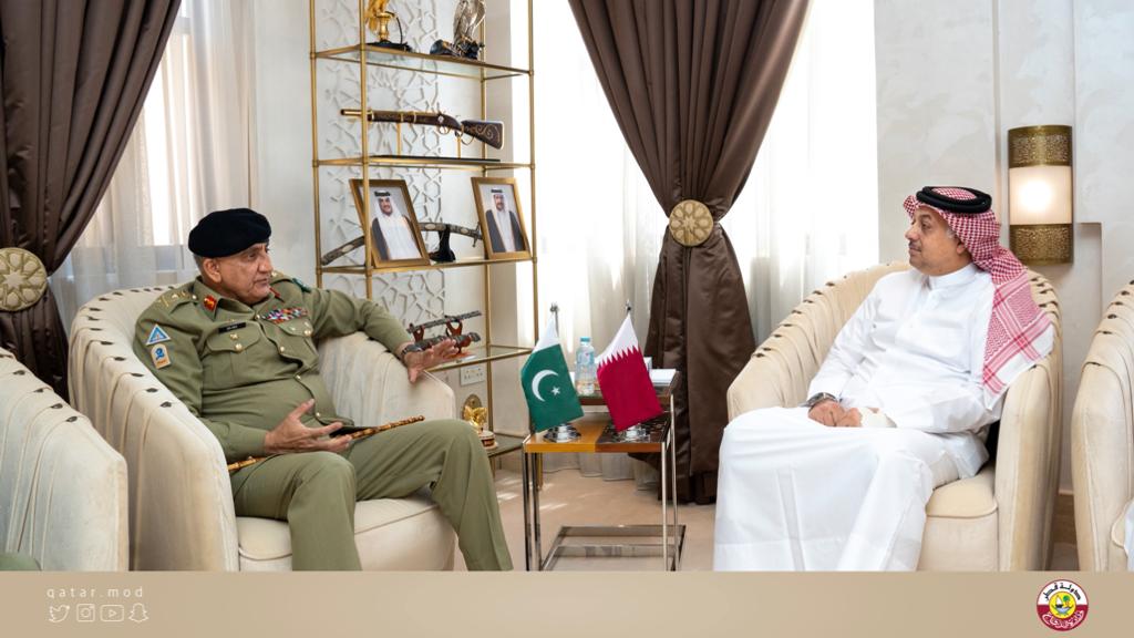 Doha, July 07 (QNA) - HE Deputy Prime Minister and Minister of State for Defense Affairs Dr. Khalid bin Mohamed Al Attiyah met on Wednesday with HE Chief of Army Staff of the Islamic Republic of Pakistan General Qamar Javed Bajwa, who is currently visiting the country. During the meeting, they reviewed the military relations between the two countries and ways to enhance them. The meeting was attended by a number of senior officers in the Qatari and Pakistani armed forces. (QNA)