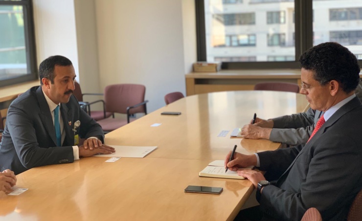 New York, Sept. 28 (BNA): Bahrain Centre for Strategic, International and Energy Studies (DERASAT) board of trustees’ chairman Dr. Shaikh Abdulla bin Ahmed Al-Khalifa met UNDP Human Development Report Office director Pedro Pedro Conceição. He commended cooperation between DERASAT and the United Nations, stressing joint efforts to contribute to elaborating strategic thinking with the aim of supporting Sustainable Development Goals , consolidating dialogue and advocating the culture of tolerance and moderating as key pillars for regional stability and prosperity and catalyst for human progress. He underlined the national report for human development which was issued by the Bahrain Centre for Strategic, International and Energy Studies (DERASAT) in cooperation with the United Nations Development Programme (UNDP). Dr. Shaikh Abdulla bin Ahmed Al-Khalifa highlighted Bahrain’s sustainable development strides, led His Majesty King Hamad bin Isa Al-Khalifa who initiated the reform project that considers people as the driving engine of development and progress. “The Kingdom of Bahrain has established itself among countries with high human development”, he said, highlighting the Government-led plans and programmes to develop education, health and services and enhance the quality of life for people. He underlined the 2030 Bahrain Economic Vision which aims to achieve sustainable development, develop human resources through training programmes and partnership with civil society institutions to promote equal opportunities. He highlighted Bahrain’s commitment to achieve gender balance, stressing success in engaging women in all fields. He paid tribute to Her Royal Highness Princess Sabeeka bint Ibrahim Al-Khalifa, Wife of HM the King and President of the Supreme Council for Women (SCW) hailing efforts to empower women in the Kingdom of Bahrain.
