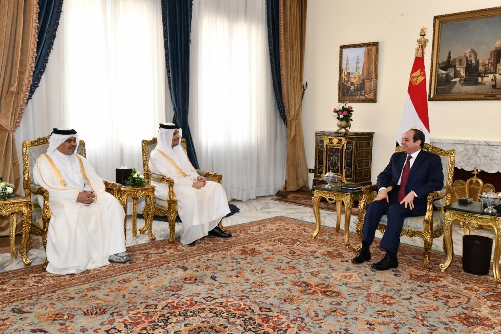 Cairo, March 29 (QNA) - HE President of the Arab Republic of Egypt Abdel Fattah Al Sisi met Tuesday in Cairo with HE Deputy Prime Minister and Minister of Foreign Affairs Sheikh Mohammed bin Abdulrahman Al-Thani. At the outset of the meeting, HE Deputy Prime Minister and Minister of Foreign Affairs conveyed the greetings of HH the Amir Sheikh Tamim bin Hamad Al-Thani to HE the President of the Arab Republic of Egypt and His Highness' wishes of good health and happiness to him and further development and prosperity to the Egyptian people. For his part, HE the President of the Arab Republic of Egypt entrusted HE Deputy Prime Minister and Minister of Foreign Affairs with his greetings to HH the Amir and his wishes of good health and happiness to His Highness and further progress and development to the Qatari people. During the meeting, they reviewed bilateral cooperation relations between the two countries, in addition to a number of issues of common interest. (QNA)