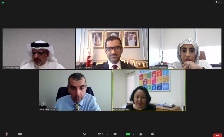 Manama, Mar. 13 (BNA): Electricity and Water Affairs Minister Wael bin Nasser Al Mubarak met virtually with the Acting Resident Representative of the United Nations (UN) Development Program in Bahrain Aykan Mukanbitova. The minister praised the important role of the program to enhance cooperation at various levels in developing and sustaining energy resources. Mukanpitova lauded Bahrain's efforts in developing the sustainable energy sector in the Kingdom.