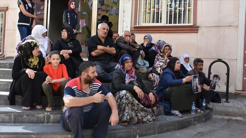 More families in southeastern Turkey joined a sit-in protest outside the provincial office of a Turkish opposition political party long accused by the government of having links to the PKK terror group. The number of the families taking part in the protest has risen to 13 since a mother, Fevziye Cetinkaya, claimed her 17-year-old son had joined the ranks of the terror group through members of the Peoples' Democratic Party (HDP) in Diyarbakir province and started the protest on Sept. 3. On the same day, three other mothers -- who claim their children were kidnapped by the PKK affiliates -- joined in forces with Cetinkaya, and the number of protesting families have been rising since then. On Saturday, Necla Cur and her husband Bedirhan Cur from eastern Agri province and Guzide Demir from Diyarbakir province also joined the protest in order to raise their voice to save their children from the hands of the terror group. Mother Cur, 43, told reporters that her son Vahit was kidnapped to the mountains four years ago, when he was 15. Cur said they decided to join the protest to save their child after they saw the action on the TV. “I will not leave here without my son. They deceived my son, they brainwashed him, and drugged him,” she said, adding that the terrorists intimidate children to stay in the mountains saying that their families would be made to suffer if they return home. “I want my son,” Cur said, noting that she went to the mountains to take her son back three years ago but returned empty-handed. “When we went there, he came and sat with me. He said ‘I want to flee but I’m scared’,” she said. Father Cur, 52, also called on his son to flee the terror group and return home. Demir also said she has not seen her son for four years, when he was 16 years old. “I just want my son, nothing else,” she said, adding that she came to the building many times to take her son back. Following the latest addition to the protest, the former head of Turkey’s Religious Affairs Directorate Prof.Mehmet Gormez voiced support on Twitter. "We share the cry of mothers whose children are held hostage in the mountains in Diyarbakir," he said, calling on all scholars to support the families. Last month, another mother, Hacire Akar, staged a similar protest near the party's office. Her son returned home a few days later giving hope to a number of mothers who suffer the same circumstances. In its more than 30-year terror campaign against Turkey, the PKK -- listed as a terrorist organization by Turkey, the U.S. and the EU -- has been responsible for the deaths of some 40,000 people, including women, children and infants.