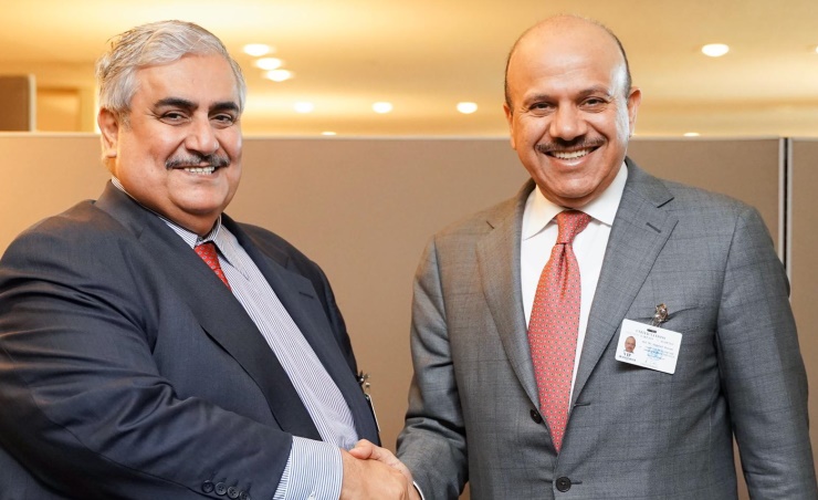 NewYork,Sept.27(BNA): The Minister of Foreign Affairs, Shaikh Khalid bin Ahmed bin Mohammed Al Khalifa, met at the United Nations Headquarters in New York City with the General Secretary of the Gulf Cooperation Council, Dr. Abdullatif bin Rashid Al Zayani. During the meeting, the Minister of Foreign Affairs expressed his sincere appreciation for the tireless efforts of Dr. Abdullatif bin Rashid Al Zayani in developing the role of the General Secretary of Gulf Cooperation Council, and enhancing the role of the Council in all regional and international issues, and in addition to the consolidation of peace and security in the region and the world. For his part, Dr. Abdullatif bin Rashid Al Zayani, expressed his pride in meeting the Minister of Foreign Affairs, which comes within his keenness to continue consultation and exchange of views on all issues that will support security, stability and development. (MOFA)