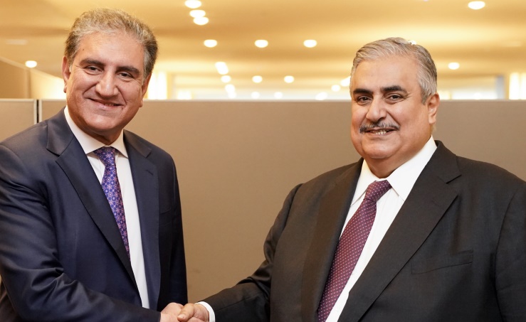 New York, Sept. 26(BNA): The Minister of Foreign Affairs, Shaikh Khalid bin Ahmed bin Mohammed Al Khalifa, met with the Foreign Minister of the Islamic Republic of Pakistan, Shah Mahmood Qureshi, on the sidelines of the 74th session of the United Nations General Assembly in New York. During the meeting, the Minister of Foreign Affairs hailed the distinct relations between the Kingdom of Bahrain and the Islamic Republic of Pakistan, and its growing progress at all levels. He also highlighted the keenness of both countries to continue cooperation and coordination on issues of mutual interest. For his part, Minister Shah Mahmood Qureshi expressed his country’s pride in its close relations with the Kingdom of Bahrain, stressing its willingness to invest in opportunities to advance these relations for the benefit of the two brotherly countries and peoples.