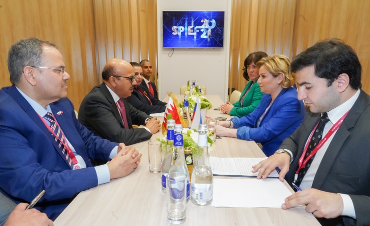 For her part, Olga Lyubimova, welcomed the participation of the Kingdom of Bahrain in the Saint Petersburg Economic Forum, praising the meetings held by the Minister on this occasion with senior officials of the Russian government, which would contribute to strengthening joint cooperation. She stressed her country's keenness to enhance various aspects of cooperation with the Kingdom and push it to broader levels to meet common aspirations and bring more benefit to the two friendly peoples. She wished the Kingdom of Bahrain further progress and prosperity.