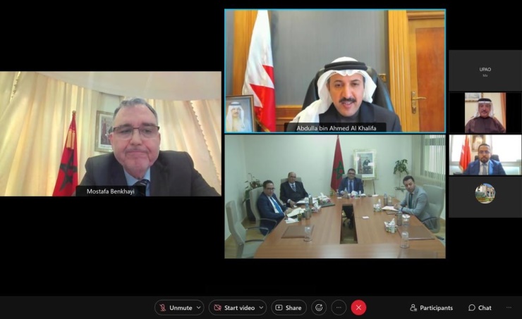 Manama, Jan. 24 (BNA): Foreign Ministry Undersecretary for Political Affairs, Ambassador Dr. Shaikh Abdulla bin Ahmed bin Abdulla Al Khalifa virtually met today with the Director General of Bilateral Relations and Regional Issues at the Ministry of Foreign Affairs, African Cooperation and Moroccans Expatriates Fouad Yazourh.