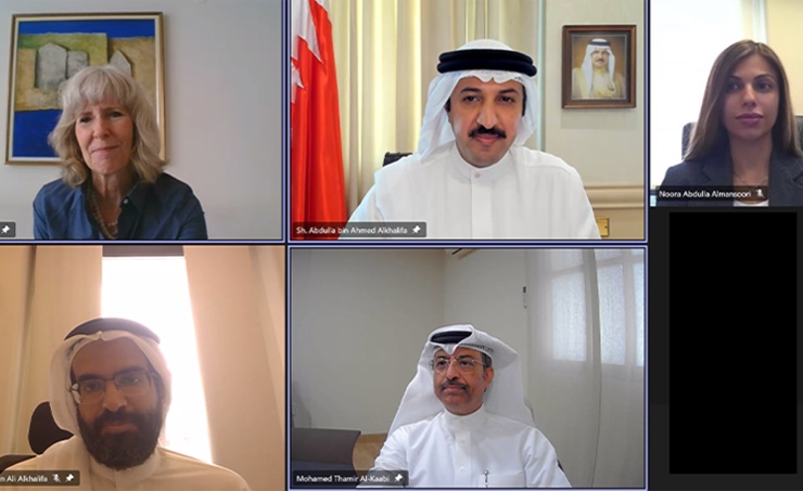 Manama, June 17 (BNA): Foreign Ministry Undersecretary for Political Affairs, Dr. Shaikh Abdullah bin Ahmed Al Khalifa, today met virtually with the US Chargé d'affaires to the Kingdom of Bahrain, Margaret Nardi.