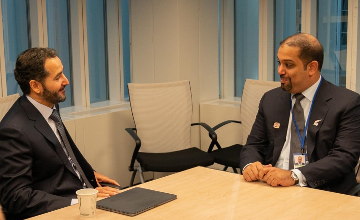 Washington, Oct. 19 (BNA): The Minister of Finance and National Economy, HE Shaikh Salman bin Khalifa Al Khalifa, today met with the Chairman of Kuwait Finance House (KFH), Hamad Abdul Mohsen Al Marzouq, on the sidelines of HE the Minister’s participation in the Annual Meetings of the Boards of Governors of the World Bank Group (WBG) and the International Monetary Fund (IMF) in Washington, D.C. During the meeting, HE Shaikh Salman highlighted the importance of the Annual Meetings of the WBG and IMF, and their role in addressing economic issues within the global economy. HE the Minister added that the meetings provide an opportunity to further strengthen economic cooperation internationally. HE Shaikh Salman further highlighted the key role banks and financial institutions play in supporting economic development.