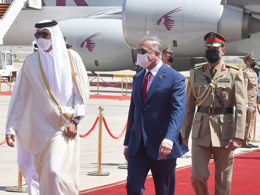 HH the Amir and the accompanying delegation were welcomed upon arrival at Baghdad International Airport, by HE Iraqi Prime Minister Mustafa Al Kadhimi, and a number of Their Excellencies the ministers and senior Iraqi officials, HE the State of Qatar's Ambassador to Iraq Khalid bin Hamad Al Sulaiti, HE Ambassador of the Republic of Iraq to Qatar Omar Al Barzanji, and members of the Qatari Embassy. (QNA)