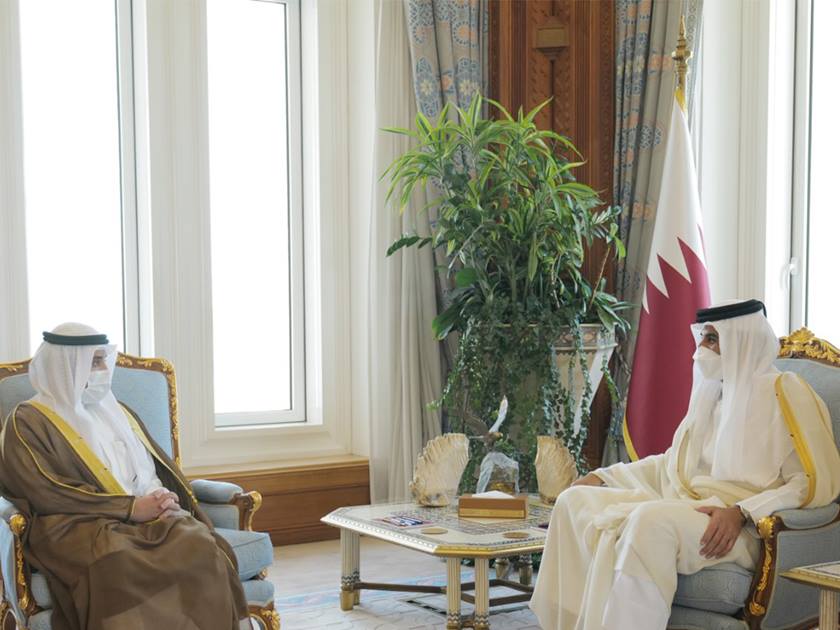 At the beginning of the meeting, HE Kuwait's Minister of Foreign Affairs conveyed the greetings of HH the Amir of the sisterly State of Kuwait Sheikh Nawaf Al-Ahmad Al-Jaber Al-Sabah to HH the Amir, wishing His Highness and the Qatari people further progress and prosperity.