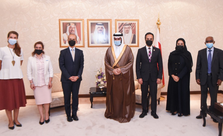 Manama, June 28 (BNA): Cabinet Affairs Ministry Undersecretary His Highness Shaikh Isa bin Ali Al Khalifa received a delegation from the UN Human Settlements Program (UN-Habitat) Regional Office for Arab States, led by its Director, Dr. Erfan Ali. Fernanda Leonardo, nominated to head the program office in Bahrain, and Amira Al Hassan, the program’s representative in Kuwait, were present. The undersecretary praised the fruitful and constructive cooperation that exists between Bahrain and UN Human Settlements Program (UN-Habitat), stressing that the comprehensive development process led by His Majesty King Hamad bin Isa Al Khalifa, had a great priority in achieving sustainable development and sustainable urban development through the service projects in the Kingdom. His Highness noted the keenness of the esteemed government headed by His Royal Highness Prince Salman bin Hamad Al Khalifa, Crown Prince and Prime Minister, to raise the level of services and improving their quality, which was reflected in improving the standard of living of citizens, which is in the direction of achieving Bahrain’s Economic Vision 2030 and promoting the achievement of the 2030 sustainable development goals and the new urban agenda. Dr. Erfan praised the Kingdom’s efforts in supporting the activities of the program at the regional and international levels, and its efforts to promote joint international action aimed at supporting sustainable urban development through its membership in the Executive Council for the program. He stressed the program's readiness to support Bahrain’s efforts in achieving the new urban agenda, noting Bahrain’s status for being the only country in the GCC that is preparing a report on the progress made in implementing the new urban development goals, where the national reports will be presented at the special session of the United Nations General Assembly in April 2022.