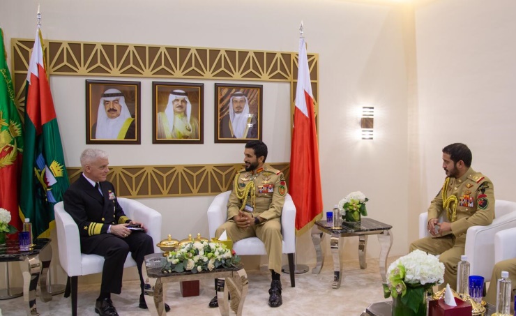 Manama, Oct. 29 (BNA): Representative of HM the King for Charity Work and Youth Affairs, National Security Advisor and Chairman of the Supreme Council for Youth and Sport (SCYS), Major-General HH Shaikh Nasser bin Hamad Al Khalifa, met, in the presence of the First Deputy Chairman of the SCYS and President of the Bahrain Olympic Committee (BOC), HH Shaikh Khalid bin Hamad Al Khalifa, a number of military officials who are participating in the Bahrain International Defence Exhibition and Conference (BIDEC 2019). HH Shaikh Nasser met the Commander of the US Fifth Fleet, Vice Admiral James J. Malloy, the Director of the French Forces’ sales in the Middle East and Africa, the Secretary General of the Centre for Islamic Military Counter Terrorism Coalition, Air Vice Marshall Mohammed bin Saeed Al-Mughaidi, and Deputy National Armament Director at the Italian military forces, Vice Admiral Dario Giacomin, in the presence of the Italian Ambassador to Bahrain, Domenico Bellato. Major-General HH Shaikh Nasser stressed the importance of exchanging views and opinions among officials, in light of the current situation in the Middle East. HH Shaikh Nasser highlighted the importance of being informed about the opinions of the parties who are living in the region, as they are well-informed about the military developments surrounding them. The meeting discussed a number of topics of mutual concern, and stressed the importance of the participation of the officials of military and civil trade and industrial sectors in BIDEC. The military officials expressed thanks to HH Shaikh Nasser for the warm welcome, affirming that BIDEC provides a suitable platform for experts to exchange experiences. They lauded the level of BIDEC 2019, and the modern equipment showcased by exhibiting companies during it