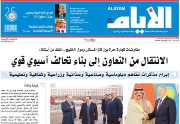 Manama: April 15 – (BNA): Al-Ayam editorial has praised the official state visit of HM King Hamad bin Isa Al Khalifa to the friendly Republic of Kazakhstan and the series of fruitful amicable talks held with the Kazakh leadership.
