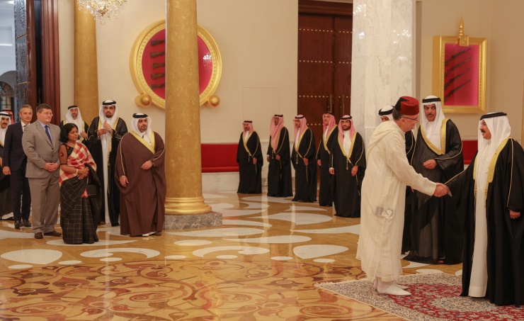 Manama, Apr.3 (BNA): His Majesty King Hamad bin Isa Al Khalifa received today at Al Safriya Palace – in the presence of His Royal Highness Prince Salman bin Hamad Al Khalifa, the Crown Prince and Prime Minister – heads of diplomatic missions accredited to Bahrain, who conveyed to HM the King greetings from their countries’ leaders on the advent of the Holy Month of Ramadan, wishing HM the King and the Kingdom and its loyal people many happy returns and further progress and prosperity. The heads of diplomatic missions hailed HM the King’s effort to further strengthen Bahrain’s relations and expand cooperation and fruitful work with their countries. HM the King welcomed the ambassadors of brotherly and friendly countries and exchanged greetings with them on this occasion, lauding strong historic relations binding Bahrain with their countries. He commended the ambassadors’ efforts to further bolster cooperation between Bahrain and the countries in light of mutual keenness on achieving common goals and aspirations. HM the King said that the Holy Month of Ramadan reinforces the values of brotherhood, solidarity and cohesion among all people, and emphasizes the tolerant principles and teachings of the true Islamic religion.