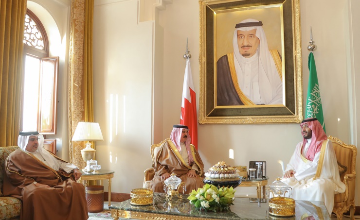 Manama, Dec. 10 (BNA): His Majesty King Hamad bin Isa Al Khalifa paid a visit today to Saudi Crown Prince, Deputy Premier and Defence Minister His Royal Highness Prince Mohammed bin Salman bin Abdulaziz Al Saud, at his residence, in the presence of His Royal Highness Prince Salman bin Hamad Al Khalifa, the Crown Prince and Prime Minister. HM the King praised the positive outcome of the visit of HRH Prince Mohammed bin Salman bin Abdulaziz Al Saud in promoting fraternal ties between the two brotherly countries. He lauded the pivotal role of the Kingdom of Saudi Arabia, under the leadership of Custodian of the Two Holy Mosques King Salman bin Abdulaziz Al Saud, in defending Arab issues, supporting the GCC march, promoting pan-Arab work and fostering security and stability in the region and the world. HM the King asked HRH the Saudi Crown Prince to convey his greetings to the Custodian of the Two Holy Mosques as well as his best wishes of more growth and prosperity to the Kingdom of Saudi Arabia. HM the King and HRH the Saudi Crown Prince reviewed historical relations between the two brotherly countries and ways of boosting bilateral cooperation in various fields. They also discussed the overall developments on the regional and international scenes and coordinating stances regarding issues of common interest. HRH the Saudi Crown Prince expressed thanks and appreciation to HM the King for the gracious welcome and hospitality and HM the King’s pioneering role in strengthening fraternal bonds between both countries. He wished the Bahraini people continued growth and prosperity under the wise leadership of HM the King. HM the King accompanied HRH Prince Mohammed bin Salman bin Abdulaziz Al Saud to Sakhir Air Base. He bid him farewell on departure from Bahrain after an official visit to the kingdom during which HRH the Saudi Crown Prince held talks with HM the King. HRH the Saudi Crown Prince was also bidden farewell by HRH the Crown Prince and Prime Minister and dignitaries.