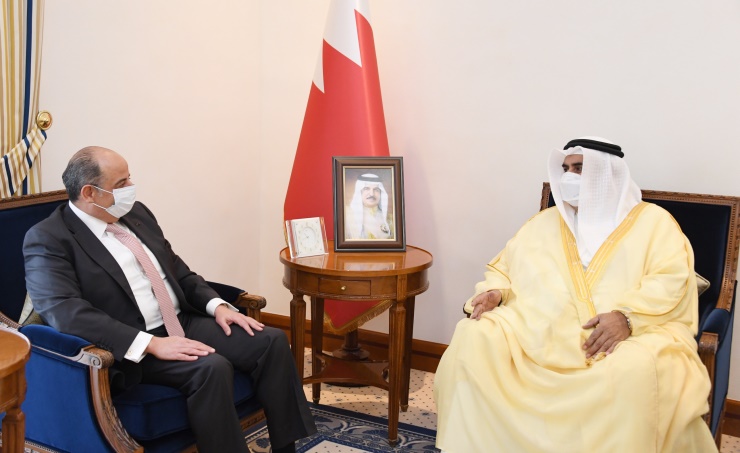 Manama, Nov. 10 (BNA): Advisor to His Majesty the King for Diplomatic Affairs Shaikh Khalid bin Ahmed bin Mohammed Al Khalifa received Jordanian Jordanian Ambassador to Bahrain Rami Al Adwan. The advisor congratulated the ambassador for being selected as the Dean of Diplomatic Corps in Bahrain, wishing him all success. They reviewed the advanced relations between the two kingdoms, and ways to enhance cooperation. The meeting discussed latest regional and international developments and topics of common interest.