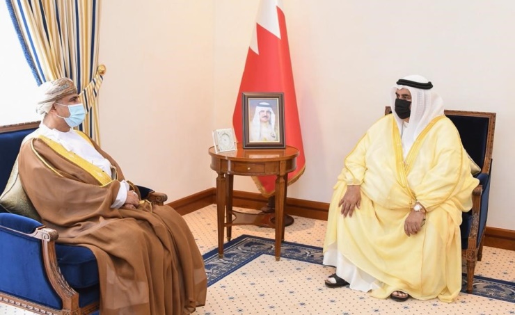 Manama, Aug. 2 (BNA): Advisor to His Majesty the King for Diplomatic Affairs Shaikh Khalid bin Ahmed bin Mohammed Al Khalifa received the outgoing Omani Ambassador Abdulla bin Rashid Al-Mudailwi.