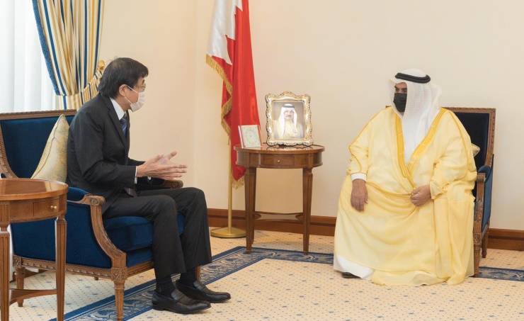 Manama, June 30 (BNA): His Majesty the King's Advisor for Diplomatic Affairs Shaikh Khalid bin Ahmed Al Khalifa received Japanese Ambassador to Bahrain Miyamoto Masayuki. Shaikh Khalid expressed Bahrain's aspiration to strengthen relations with Japan in various fields in a way that supports the interests of the two countries and peoples, wishing the ambassador success. The ambassador affirmed Japan's keenness to advance its relations with Bahrain to broader horizons at all levels.