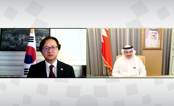 Manama, Feb. 8 (BNA): His Royal Highness Prince Salman bin Hamad Al Khalifa, the Crown Prince and Prime Minister, today held a remote meeting with the newly appointed Ambassador of the Republic of Korea to the Kingdom of Bahrain, HE Hae Kwan Chung.
