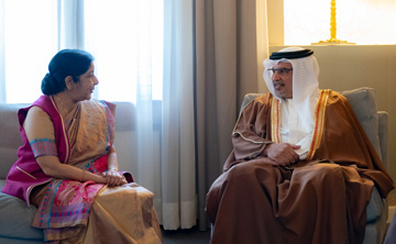 Manama, July 15 (BNA): His Royal Highness Prince Salman bin Hamad Al Khalifa, Crown Prince, Deputy Supreme Commander and First Deputy Prime Minister, today met the Minister of External Affairs for the Republic of India, Her Excellency Sushma Swaraj, at Riffa Palace. Bahrain’s Foreign Minister His Excellency Shaikh Khalid bin Ahmed bin Mohammed Al Khalifa attended the meeting.
