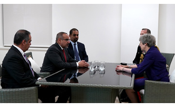 London, June 21 (BNA): His Royal Highness Prince Salman bin Hamad Al Khalifa, the Crown Prince, Deputy Supreme Commander and First Deputy Prime Minister, today met the Prime Minister of the United Kingdom, Her Excellency Theresa May. The meeting took place on the sidelines of HRH the Crown Prince’s visit to the United Kingdom to attend the official handover ceremony of the new Defence and National Rehabilitation Centre (DNRC).