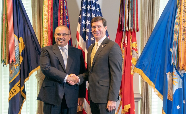Washington, Sept. 18 (BNA): His Royal Highness Prince Salman bin Hamad Al Khalifa, Crown Prince, Deputy Supreme Commander and First Deputy Prime Minister, today met with the United States Secretary of Defence, Mark Thomas Esper, at the Pentagon. During the meeting, HRH the Crown Prince highlighted that continued defence coordination and collaboration represents a cornerstone of the strategic partnership between Bahrain and the United States. His Royal Highness pointed out that Bahrain has hosted the United States’ Fifth Fleet in the Arabian Gulf region since 1947, a continual reminder of the long-standing and mutually supportive partnership between the two countries. HRH the Crown Prince later noted that Bahrain and the United States are fully aligned on a number of key issues, including the need to counter destabilising activities in the region and further afield. HRH the Crown Prince went on to point out the Kingdom’s role in the development of a maritime taskforce to better protect shipping in the Arabian Gulf, a clear example of how Bahrain-US collaboration is supporting regional stability. HRH the Crown Prince and the U.S. Secretary of Defense then reviewed ways to further strengthen bilateral relations and safeguard regional security.