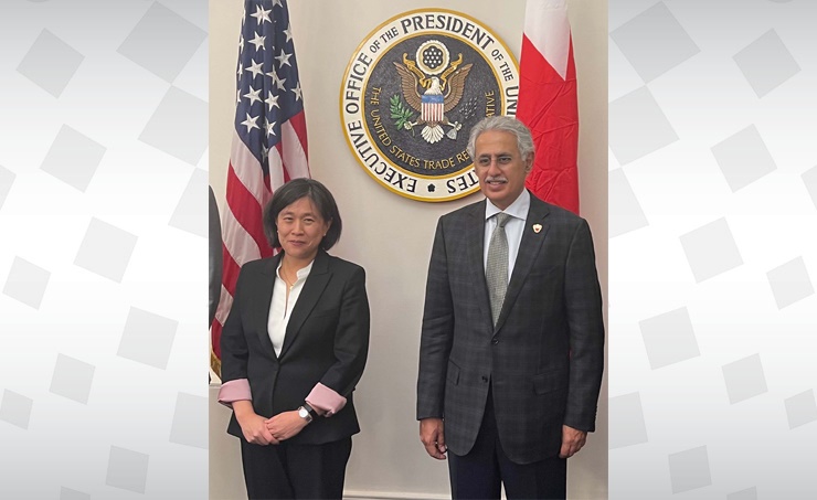 Washington, Mar. 4 (BNA): On the sidelines of the visit of His Royal Highness Prince Salman bin Hamad Al Khalifa, the Crown Prince and Prime Minister, to the United States, Minister of Industry, Commerce and Tourism, Zayed bin Rashid Al Zayani, today held a meeting with US Trade Representative and chief trade lawyer, Katherine Tai.