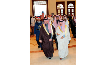 Manama, Jan. 8 (BNA): Interior Minister Lt-General Shaikh Rashid bin Abdullah Al Khalifa today welcomed His Royal Highness Saudi Interior Minister Prince Abdulaziz bin Saud bin Nayef Al-Saud on his arrival in Bahrain leading a high-profile security delegation on a three-day official visit. Ambassadors of both countries and senior Interior officials were present.