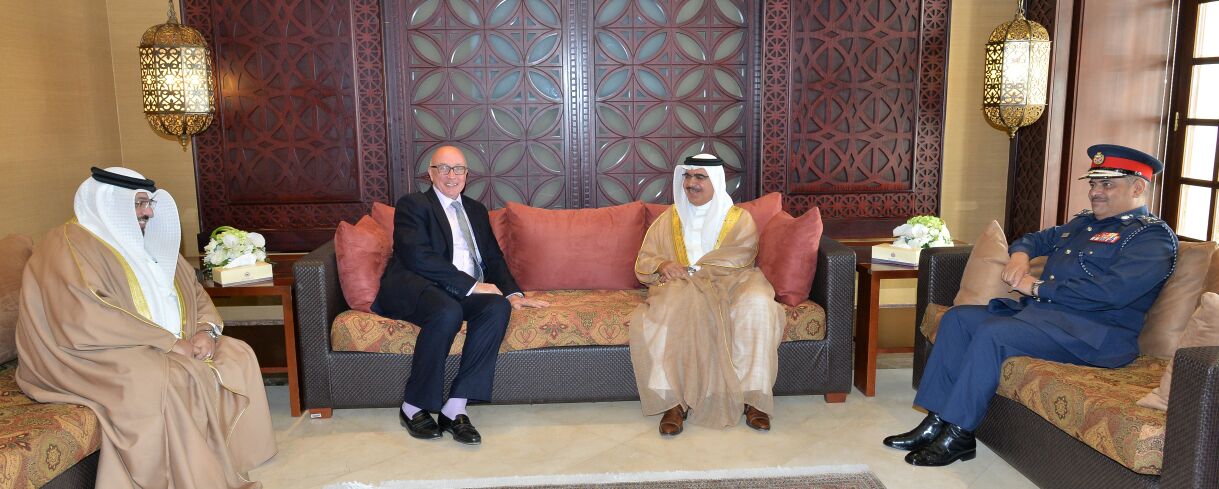 Manama, May 25 (BNA): Interior Minister Lt-General Shaikh Rashid bin Abdullah Al Khalifa received here today Executive Director of the International Institute for Strategic Studies in the Middle East (IISS-ME) Sir John Jenkins, in the presence of Chief of Public Security Major-General Tariq Al Hassan.