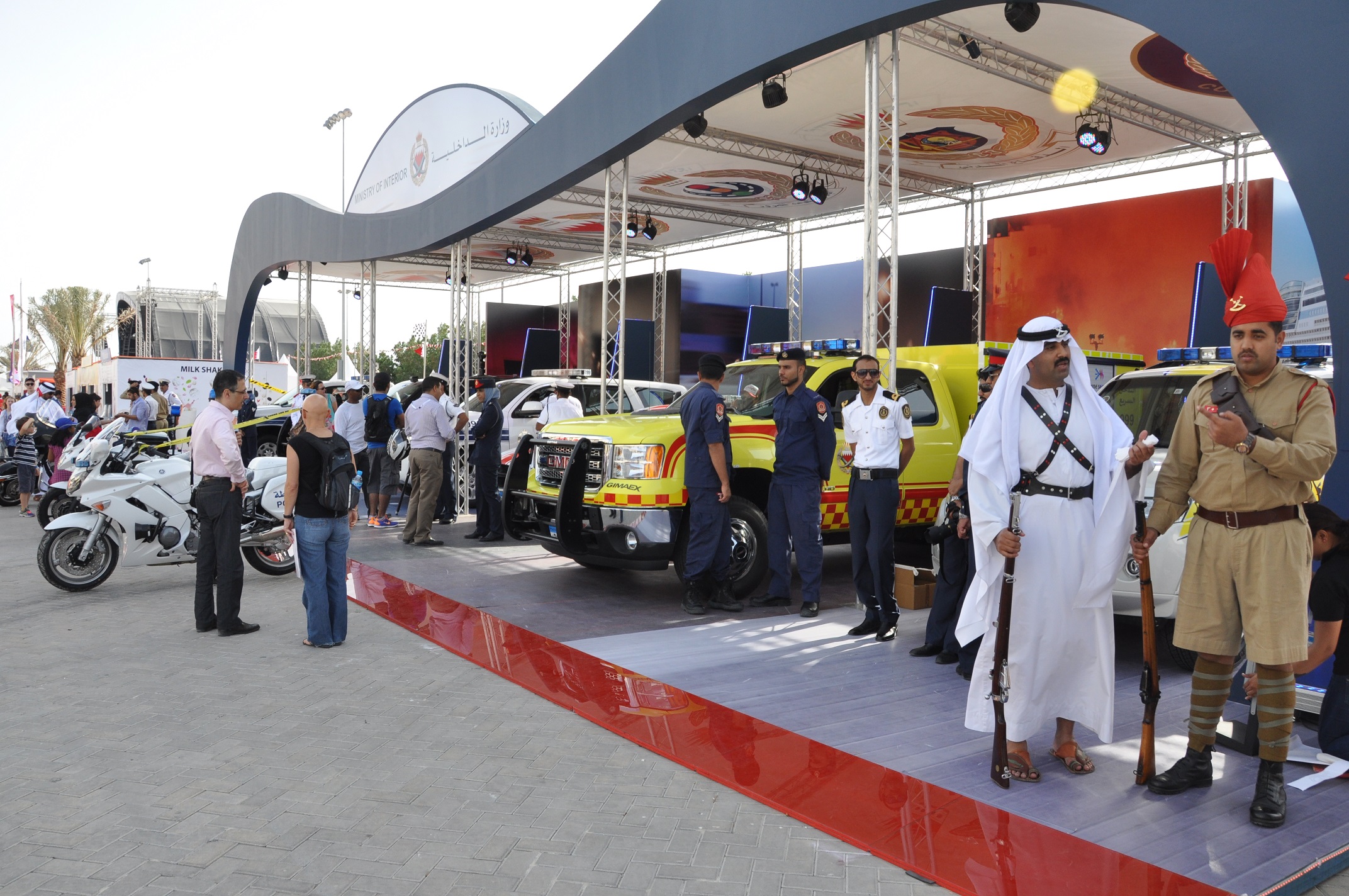 They highlighted to the F1 visitors their duties and services offered to the public, in addition to the latest technology in use. Various MOI vehicles were on display. (MOI-Media Centre)