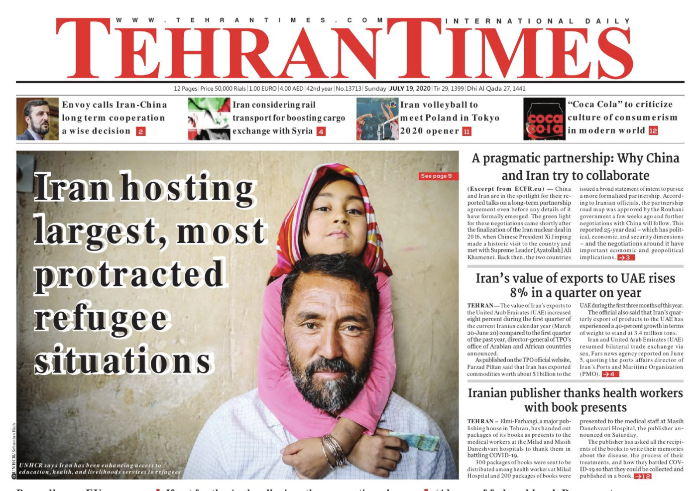 TEHRAN – The Islamic Republic of Iran is host to one of the largest and most protracted urban refugee situations in the world and has provided asylum to refugees for four decades. The latest official government statistics in 2014, there are 951,142 Afghan refugees and 28,268 Iraqi refugees living in Iran. Many of the refugees living in Iran are second and third generation, according to the United Nations High Commissioner for Refugees (UNHCR). About 97 percent of refugees live in urban and semi-urban areas, while 3 percent are residing in 20 refugee resorts run by the UNHCR's main government counterpart, the Interior Ministry's Office for Citizens and Foreign Immigrants. In addition to Afghan refugees, there are about 2.5 million Afghans living in Iran, including those having a passport and undocumented Afghans. 450,000 Afghan who did not have identity cards or birth certificates have received Iranian visas that allow them to live, work or study in the country. In addition, in an effort to organize undocumented Afghans, the government in 2017 conducted a census of a specific group of undocumented Afghans living in Iran and for more than 804,000 undocumented individuals were registered. The legal status of refugees is defined by two international instruments, the 1951 Refugee Convention and its 1967 annex. Iran, subject to the provisions of Articles 17 (for-profit employment), 23 (government charity), 24 (Labor and Social Insurance Laws) and 25 (Freedom of Movement) on July 28, 1967, joined both the 1951 Convention and the Protocol 1967. In recent years, however, the government has been able to gradually introduce strategic policies for refugees and provide more rights to the people of Afghanistan and Iraq living in Iran, and to provide access to basic educational, health, and livelihood services to refugees with minimal financial assistance from the international community. Afghan refugees receive free treatment amid coronavirus Iran ramped up its production of essential medical equipment, and independent entrepreneurs – refugees included – have redirected their efforts towards contributing to the national COVID-19 response. However, the coronavirus shows no sign of abating and, with a socio-economic environment placed under additional strain, Iran needs more support to be able to help the increasing number of people affected by the virus, including refugees. There are close to one million refugees in Iran and 1.5-2 million undocumented Afghans who have access to free primary health services and similarly free COVID-19 related testing, treatment, and hospitalization, just like nationals. In Iran, UNHCR is seeking $16.2 million for its COVID-19 emergency, while requires an additional $98.7 million to support Iran in maintaining and sustaining its commendable inclusive refugee policies, under the umbrella of the Solutions Strategy for Afghan Refugees (SSAR). Supports for Afghan refugees in Iran Iran spends about 20 trillion rials (nearly $477 million at the official rate of 42,000 rials) every year on the education of foreign national students residing in the country, head of the international affairs department of the Ministry of Education Gholamreza Karimi said in March. Over 474,000 Afghan national children are receiving education in Iran completely free of charge, he added. Out of 970,000 foreigners (men and women) in working-age of 15 to 60 years, some 36,000 are under social insurance coverage in the country, head of Social Security Organization’s department for foreign nationals Ahmad Reza Khazaei said in July 2018. Iran is host to one of the largest and most protracted refugee populations worldwide. Refugees in the world The COVID-19 pandemic and the recent anti-racism protests have shown us how desperately we need to fight for a more inclusive and equal world: a world where no one is left behind. It has never been clearer that all of us have a role to play in order to bring about change. Every minute 20 people leave everything behind to escape war, persecution, or terror. There are several types of forcibly displaced persons, including, refugees, asylum seekers, internally displaced persons, stateless persons, returnees. Refugees are among the most vulnerable people in the world. The 1951 Refugee Convention and its 1967 Protocol help protect them. They are the only global legal instruments explicitly covering the most important aspects of a refugee’s life. According to their provisions, refugees deserve, as a minimum, the same standards of treatment enjoyed by other foreign nationals in a given country and, in many cases, the same treatment as nationals. The 1951 Convention contains a number of rights and also highlights the obligations of refugees towards their host country. The cornerstone of the 1951 Convention is the principle of non-refoulment. According to this principle, a refugee should not be returned to a country where he or she faces serious threats to his or her life or freedom. This protection may not be claimed by refugees who are reasonably regarded as a danger to the security of the country, or having been convicted of a particularly serious crime, are considered a danger to the community.