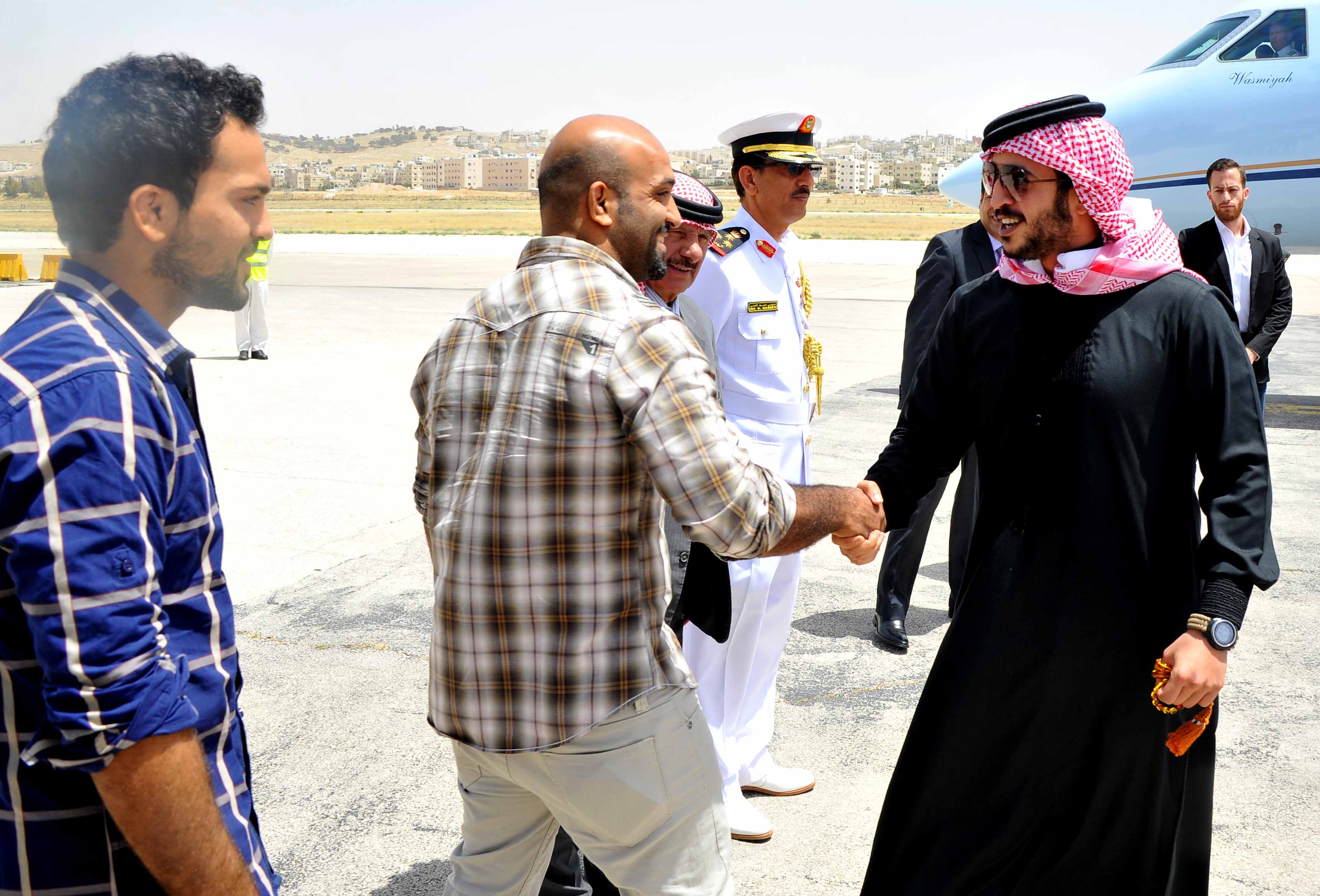 HH Shaikh Khalid bin Hamad Al-Khalifa was received on arrival at Markah Airport in Amman by Al-Sharif Faisal bin Jameel, Bahrain Military Attache to Jordan Brigadier Isa Mohammed Al-Dosary, Charge d'Affaires Khalifa Al-Hooty, Desert Force executive director Zaid Mirza and other senior officials.