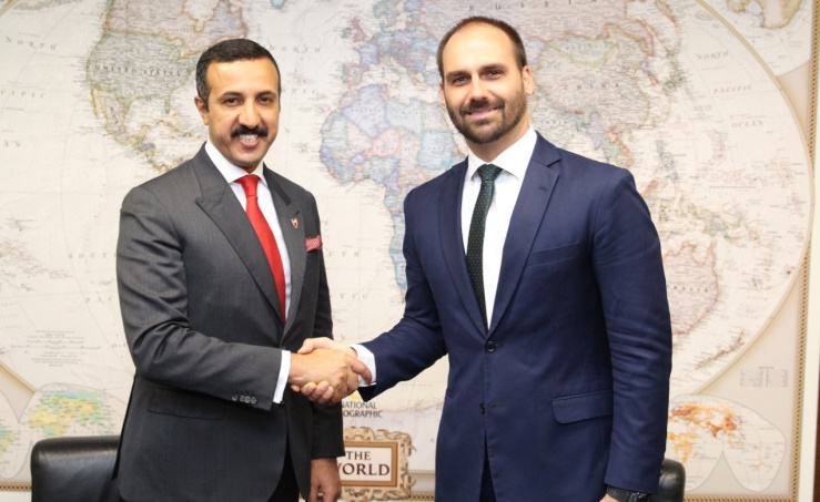 Brasilia, Sept. 19 (BNA): The Undersecretary of the Ministry of Foreign Affairs for International Affairs, Dr. Shaikh Abdulla bin Ahmed Al Khalifa, met with Eduardo Bolsonaro, son of the President of Brazil and President of Foreign Relations Committee of the Lower House of the Federal Republic of Brazil, in Brasilia.