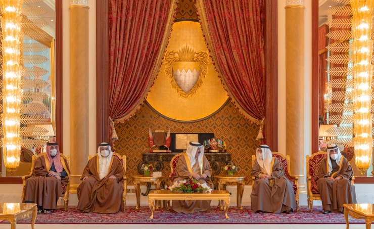 HM the King also received at Al-Sakhir Palace today, in the presence of HRH the Crown Prince and Prime Minister, Speaker of the Representatives Council Fawzia bint Abdullah Zainal, Shura Council Chairman Ali bin Saleh Al Saleh, and their Deputies. They extended heartfelt congratulations to HM the King on the 21st anniversary of the National Action Charter, commending HM’s wise leadership and the kingdom’s achievements brought about in his prosperous era.