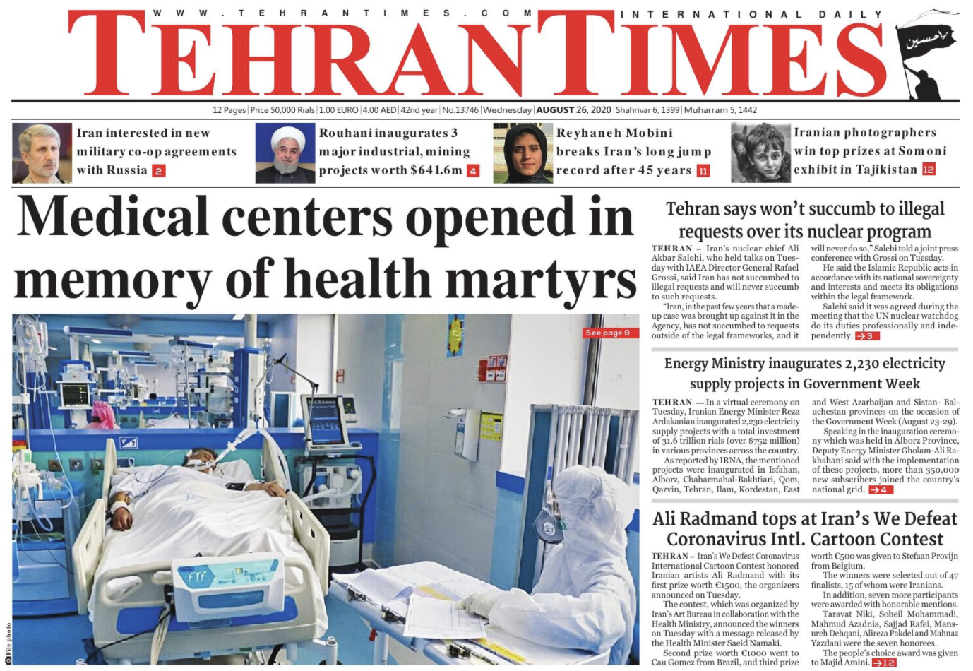 TEHRAN – The Ministry of Health inaugurated 164 medical centers across the country on Tuesday in memory of the healthcare workers who have lost their lives fighting the coronavirus pandemic.
