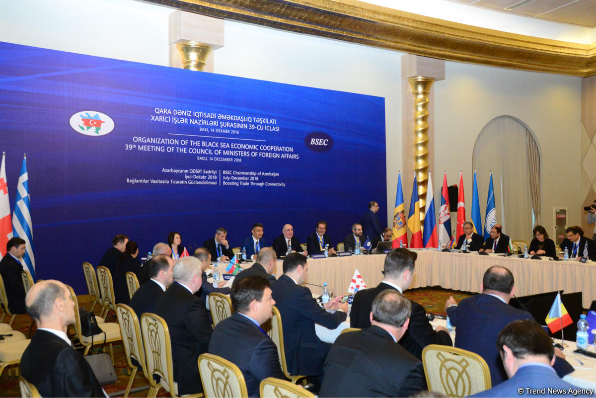Baku, Azerbaijan, Dec. 14 By Leman Zeynalova – Trend: The 39th meeting of the Council of Foreign Ministers of the Organization of the Black Sea Economic Cooperation member-states kicked off in Baku under the chairmanship of Azerbaijan, Trend's correspondent reported from the event. The delegations headed by senior officials of the BSEC member-states are taking part in the meeting. Among the main priorities of Azerbaijan’s chairmanship are to render efficient, reliable and safe transport and transit services as part of BSEC, increase the export potential of agriculture and further develop the tourism sector. In general, during Azerbaijan’s chairmanship, four ministerial meetings were held, including a meeting at the level of foreign ministers, 21 thematic meetings of the working group and an ad hoc working group. The action plans of a number of working groups (tourism, ICT, energy) were adopted. More than 10 meetings of the bodies of the organization, workshops and other events were held. Moreover, the corresponding assessment documents were prepared to improve the efficiency of the organization. Moreover, during Azerbaijan’s chairmanship, the discussions were underway to complete the work on the project "Regional Trade Facilitation Strategy for the BSEC Region" and the project "BSEC Single Window Cooperation". After Azerbaijan, the chairmanship will be transferred to Bulgaria. The Organization of the Black Sea Economic Cooperation is an intergovernmental organization uniting 12 countries of the Black Sea and southern Balkans. The organization was founded in 1992. The headquarters of the organization is located in Istanbul. Azerbaijan assumed the BSEC chairmanship at the 38th meeting of the Organization's Council of Foreign Ministers, which took place on June 27. Azerbaijan will chair BSEC until December 2018. Follow Trend on Telegram. Only most interesting and important news