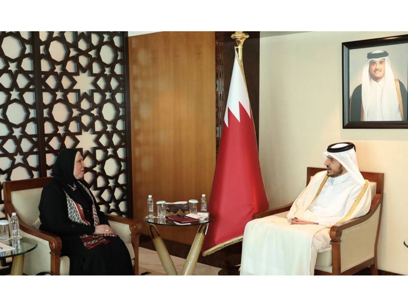 Doha, June 20 (QNA) - HE Minister of Commerce and Industry Sheikh Mohammed bin Hamad bin Qassim Al-Thani met with HE Minister of Trade and Industry of the Arab Republic of Egypt Nevine Gamea, who is currently visiting the country to participate in the Qatar Economic Forum, Powered by Bloomberg.