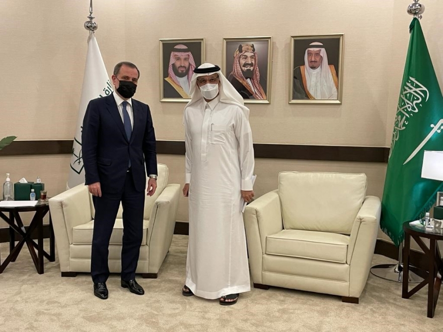 Baku, June 24, AZERTAC “Saudi companies are keen on participating in projects in Azerbaijan,” said Minister of Investment of the Kingdom of Saudi Arabia, Co-chairman of the Joint Commission between the Government of the Republic of Azerbaijan and the Government of the Kingdom of Saudi Arabia Khalid Bin Abdulaziz Al-Falih as he met with Azerbaijan’s Minister of Foreign Affairs Jeyhun Bayramov. Saudi Minister Khalid Bin Abdulaziz Al-Falih recalled with pleasure his visits to Azerbaijan and his meetings with President Ilham Aliyev and shared his impressions of Azerbaijan. Touching upon the relations between the Republic of Azerbaijan and the Kingdom of Saudi Arabia at the level of Heads of States, Minister Jeyhun Bayramov noted high level of political relations between the two countries and stressed the importance of developing cooperation in other areas. Noting the role of the Joint Commission in the development of cooperation, FM Bayramov stressed the success of the last meeting of the Commission, which took place in March of 2019 in Baku. He noted the opportunities for cooperation in energy, agriculture, tourism and mining as priority areas of economic cooperation. Minister Bayramov informed Khalid Bin Abdulaziz Al-Falih of the results of Armenia's military aggression against Azerbaijan and the situation in the region after the 44-day Patriotic War. Speaking about the reconstruction works and infrastructure projects in the liberated territories of Azerbaijan Minister Bayramov invited friendly Saudi Arabia to participate in this process. Noting Azerbaijan’s great potential for the export of agricultural products to Saudi Arabia, the FM stressed the importance of intensifying cooperation in this area. Touching upon cooperation between the two countries in the field of tourism, Bayramov stressed the importance of continuing in the future the positive dynamics observed in the mentioned field before the pandemic. Khalid Al-Falih brought to attention that during his visit to Azerbaijan as the Minister of Energy of the Kingdom he has discussed opportunities for cooperation in the fields of renewable energy and petro-chemistry, touched upon tourism potential of the country, and speaking about cooperation in the field of air transport, he stressed the importance of passenger transportation as well as cargo transportation. Expressing that Saudi companies are interested in participating in projects in Azerbaijan, he noted that this issue will be discussed at the next meeting of the Joint Commission in Riyadh in autumn of this year, he spoke about the establishment of the Azerbaijan-Saudi Arabia Business Council and organization of a joint Business Forum. The sides also discussed other issues of mutual interest.