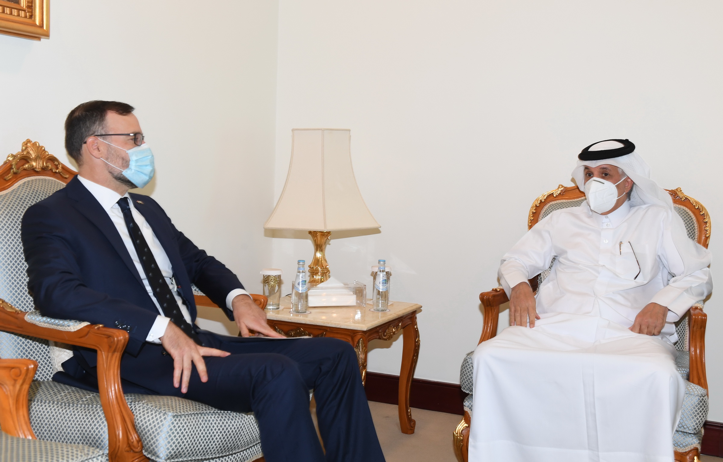 Doha, August 08 (QNA) - HE Minister of State for Foreign Affairs Sultan bin Saad Al Muraikhi met on Sunday with HE Ambassador of Hungary to Qatar Fodor Barnabas, on the occasion of the end of his tenure. HE the Minister of State for Foreign Affairs thanked HE the Ambassador for his efforts in supporting and strengthening bilateral relations, and wished him success in his new missions. (QNA)