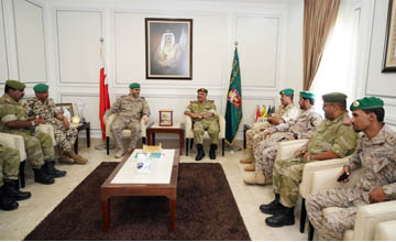 Manama, June 26 (BNA): National Guard's Director of Staff Major-General Shaikh Abdulaziz bin Saud Al Khalifa today received the Peninsula Shield Joint Force (PSJF)'s Commander Major-General Waleed bin Falih Al Zhaheri, and his accompanying delegation.